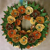 Az óriás koszorú az ajtóra ugyan nagy lett, de a kandallón remekül mutat így az ajtóra kellett egy kisebb kopogtató és a kandalló párkányára is egy girland.